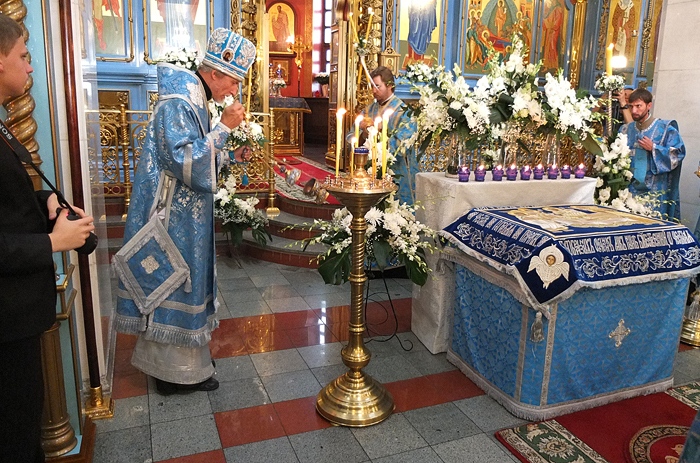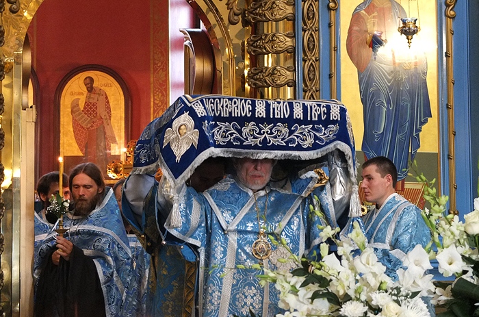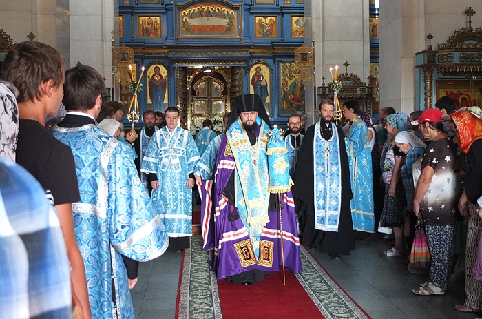 Митрополит Хабаровский и Приамурский Игнатий возглавил Всенощное бдение в Градо-Хабаровском соборе Успения Божией Матери. 27 августа 2014 г. Успение Божией Матери.