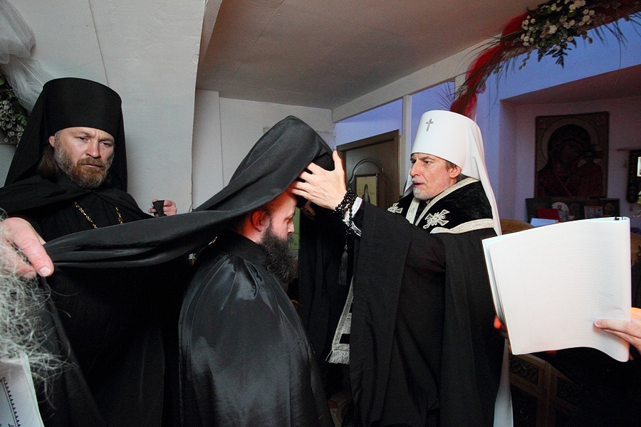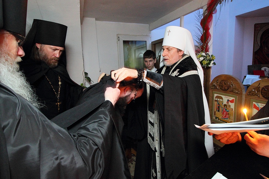 Иноческий постриг священноинока Георгия (Митина) в малую схиму (мантию). Свято-Успенское хабаровское архиерейское подворье. 9 апреля 2015 года
