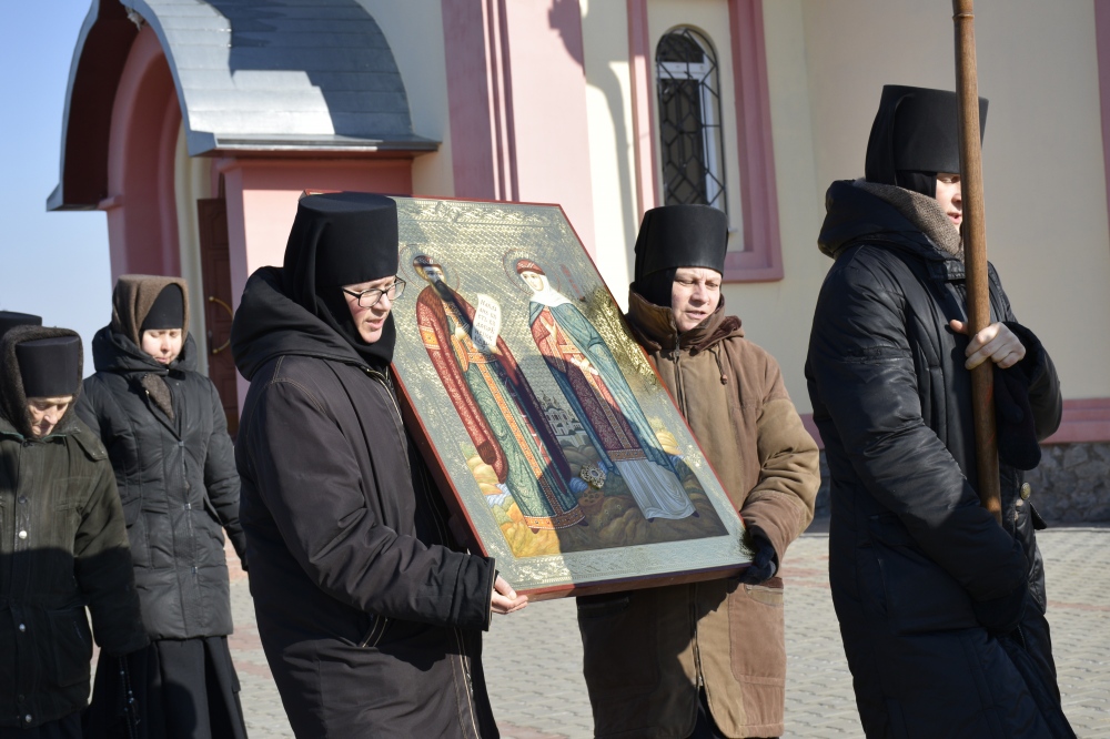 Встреча иконы с мощами святых Петра и Февронии Муромских в Петропавловском женском монастыре 23 февраля 2019 г.